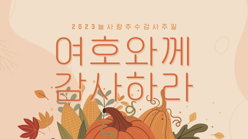 2023 늘사랑 추수감사주일예배 주요알림 2023 늘사랑 추수감사주일예배 2023년 늘사랑 추수감사주일예배를 아래와 같이 드립니다. 한 해 동안 인도하시며 삶을 돌보신 하나님을 기뻐하며 감사로 예배합니다. - 일시 : 2023년 11월 19일(주일) - 장소 : 늘사랑교회신형철목사2023년 11월 17일