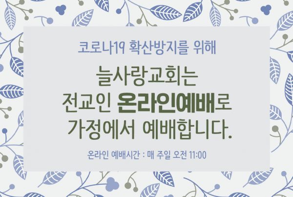 늘사랑교회는 2020년 한 해의 삶을 인도해오신 하나님을 기억하며 전 교인이 감사의 자리로 나아가는 를 아래와 같이 시행합니다. - 기간 : 2020년 10월 26일(월) - 11월 14일(토) - 대상 : 늘사랑교회 전 교인…
