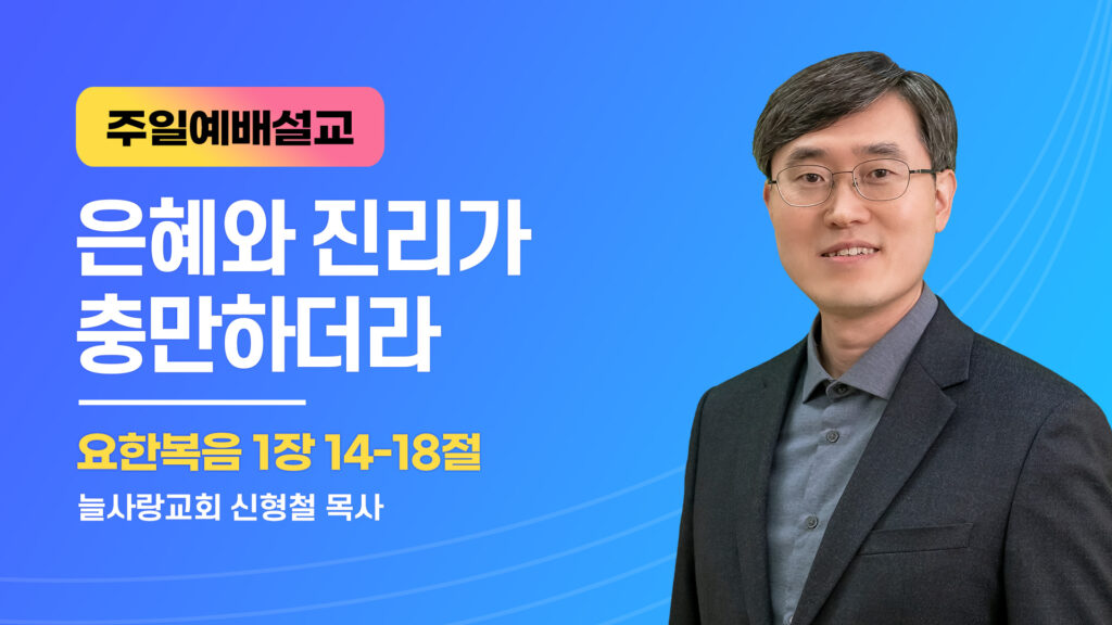 Play VideoPlay Video 본문 : 요한복음 1장 14-18절 제목 : 은혜와 진리가 충만하더라 [요1:14-18] 14 말씀이 육신이 되어 우리 가운데 거하시매 우리가 그의 영광을 보니 아버지의 독생자의 영광이요 은혜와 진리가...