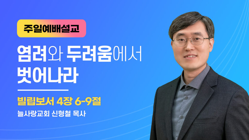 2022년 3월 20일 주일예배 설교 By 신형철목사주일설교No Comments Play VideoPlay Video 본문 : 빌립보서 4:6-9 제목 : 염려와 두려움에서 벗어나라 6. 아무 것도 염려하지 말고 다만 모든 일에 기도와 간구로, 너희 구할 것을 감사함으로 하나님께 아뢰라 7. 그리하면...Read More 2022년 3월 26일 Love0