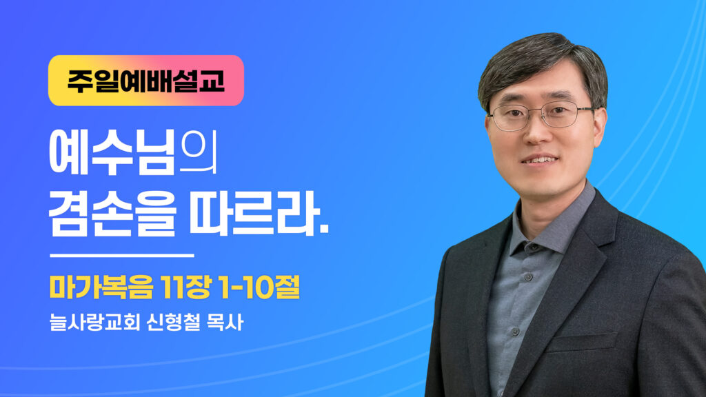 2022년 4월 10일 종려주일예배 설교 By 신형철목사주일설교No Comments Play VideoPlay Video 본문 : 마가복음 11:1-10 제목 : 예수님의 겸손을 따르라 1. 그들이 예루살렘에 가까이 와서 감람 산 벳바게와 베다니에 이르렀을 때에 예수께서 제자 중 둘을 보내시며 2. 이르시되...Read More 2022년 4월 10일 Love0