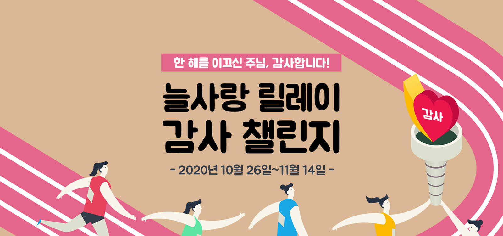 늘사랑교회는 2020년 한 해의 삶을 인도해오신 하나님을 기억하며 전 교인이 감사의 자리로 나아가는 [늘사랑 릴레이 감사 챌린지]를 아래와 같이 시행합니다.