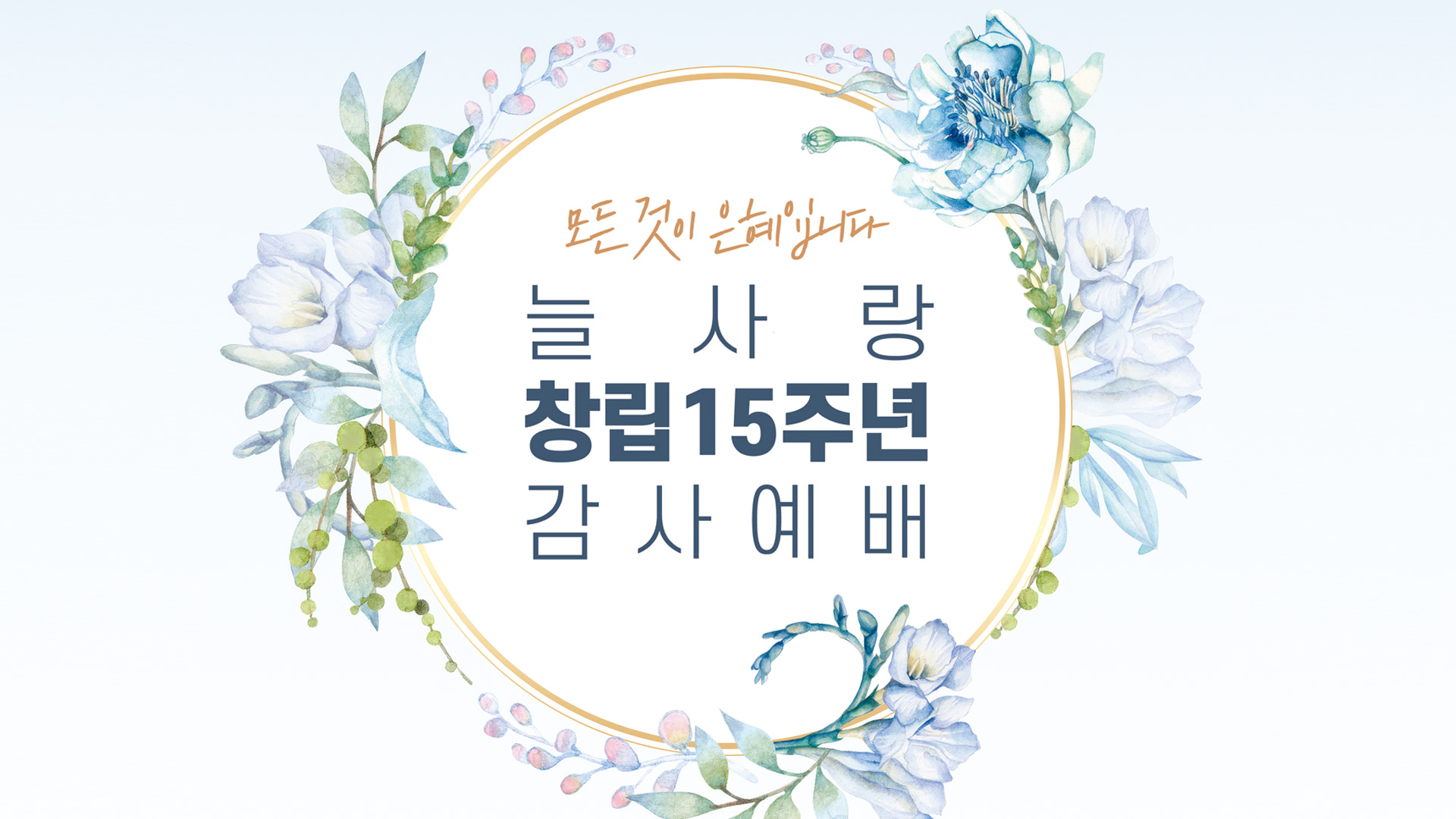 늘사랑 창립15주년 감사예배 늘사랑의 15번째 생일, 창립15주년 감사예배가 다음과 같이 드려집니다. 여기까지 은혜로 인도하신 하나님을 찬양합니다! – 일시 : 2026년 3월 1일(주일) – 장소 : 늘사랑교회 목록으로 돌아가기