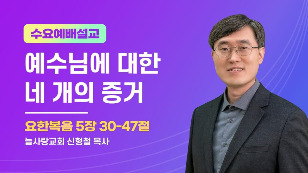 2023년 7월 19일 수요예배 설교 By 늘사랑수요예배설교No Comments Play VideoPlay Video 본문 : 요한복음 5장 30-47절 제목 : 예수님에 대한 네 개의 증거 30 내가 아무 것도 스스로 할 수 없노라 듣는 대로 심판하노니 나는 나의 뜻대로 하려...Read More 2023년 7월 22일 Love0