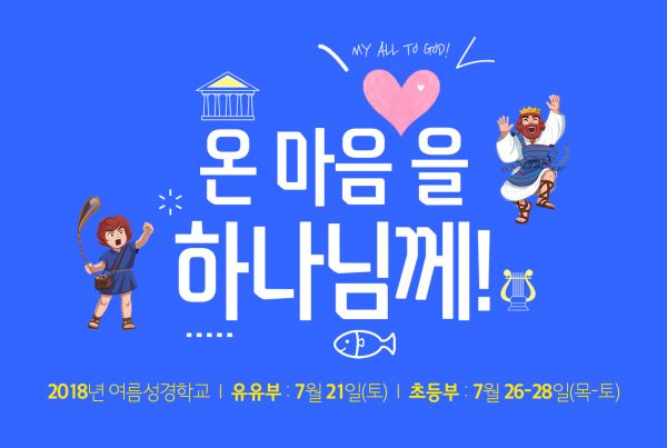 2018년 여름성경학교가 아래와 같이 진행됩니다. - 유아유치부 : 2018년 7월 21일(토) / 늘사랑교회 - 초등부 : 2018년 7월 26-28일(목-토) / 늘사랑교회 - 유아유치부 : 정효 전도사 (‭010-5077-5185‬) - 초등부 :…