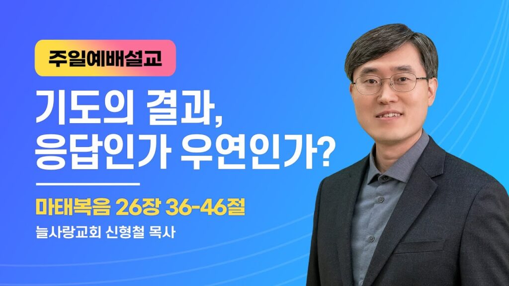 2023년 7월 23일 주일예배 설교 By 늘사랑주일설교No Comments Play VideoPlay Video 본문 : 마태복음 26장 36-467절 제목 : 기도의 결과, 응답인가 우연인가? 36 이에 예수께서 제자들과 함께 겟세마네라 하는 곳에 이르러 제자들에게 이르시되 내가 저기 가서 기도할 동안에...Read More 2023년 7월 23일 Love0