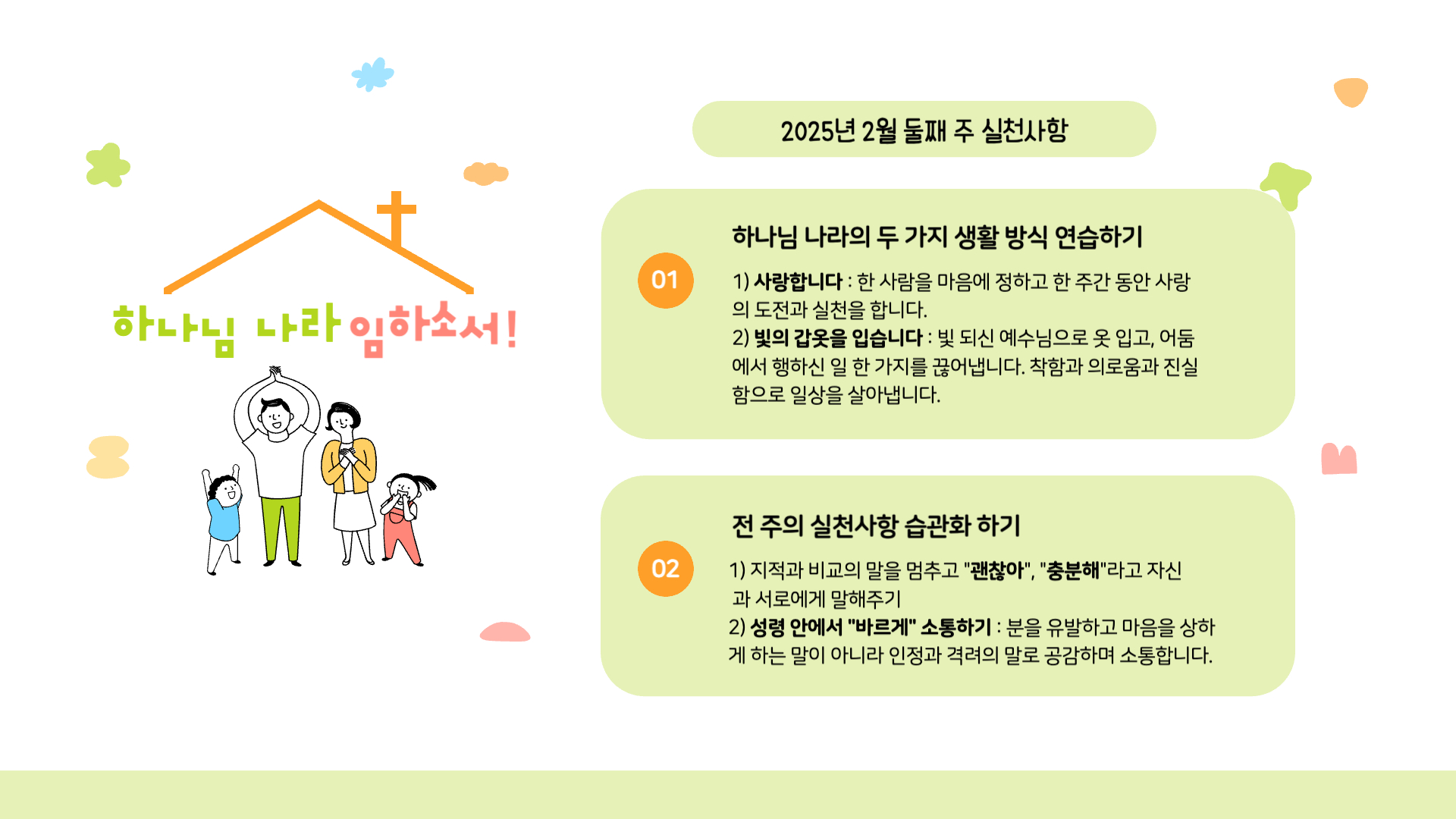 2월 둘째 주 <늘사랑 하나님 나라 실천사항>을 나눕니다.