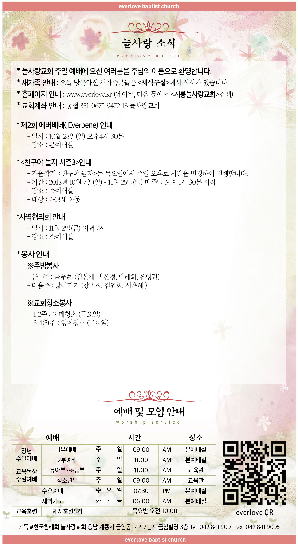 말씀이 삶이되는 늘사랑교회 늘사랑의 다양한 소식들을 전해 드립니다. 예배 순서와 말씀 본문도 보실 수 있습니다. 진행되는 사역들을 위해 함께 기도해 주세요. Tags:2018계룡교회늘사랑사역협의회소식시즌3에버베네친구야놀자