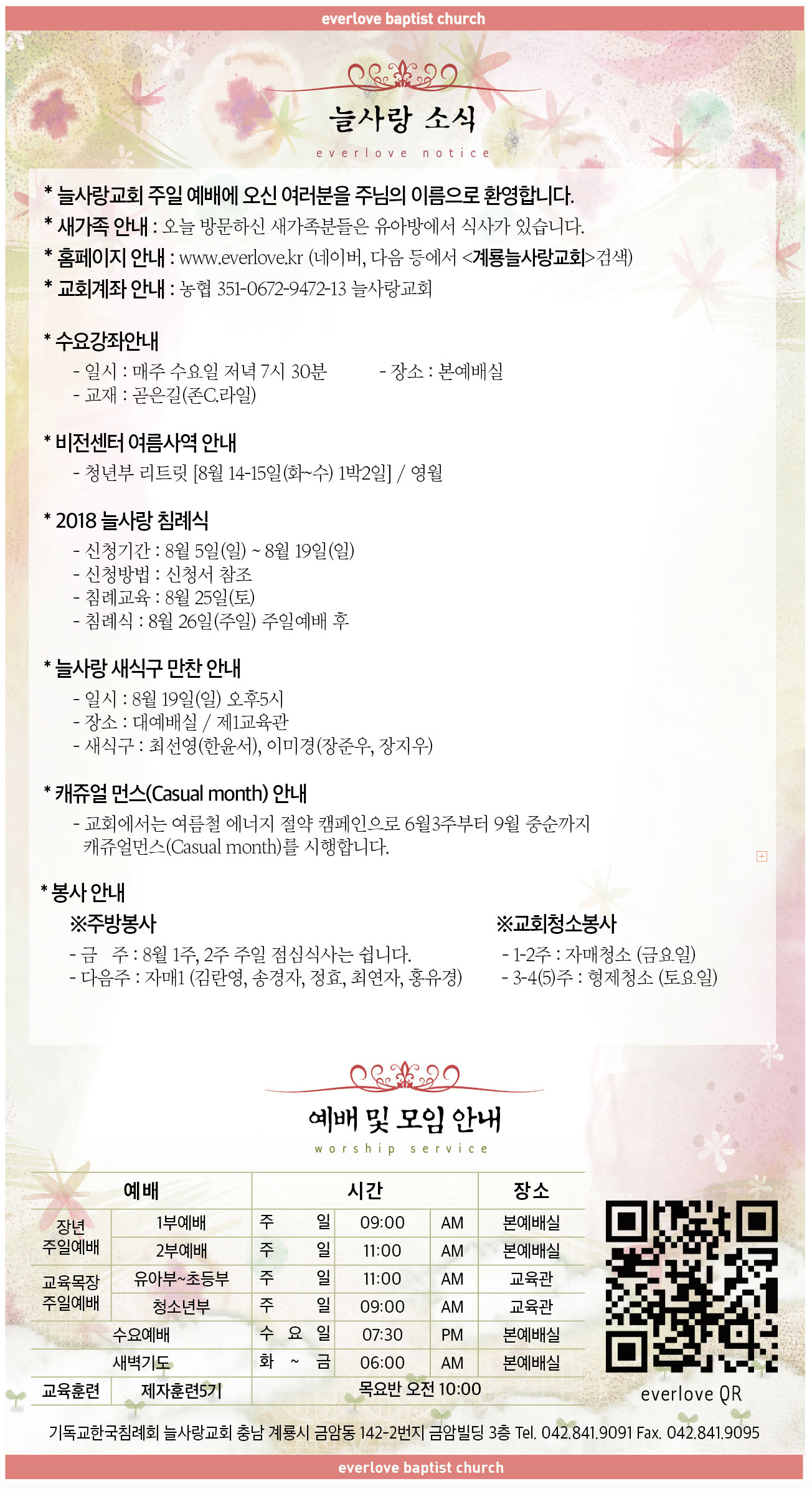 말씀이 삶이되는 늘사랑교회 늘사랑의 다양한 소식들을 전해 드립니다. 예배 순서와 말씀 본문도 보실 수 있습니다. 진행되는 사역들을 위해 함께 기도해 주세요. Tags:2018강좌계룡교회늘사랑만찬먼스비전센터새식구소식수요여름사역캐쥬얼