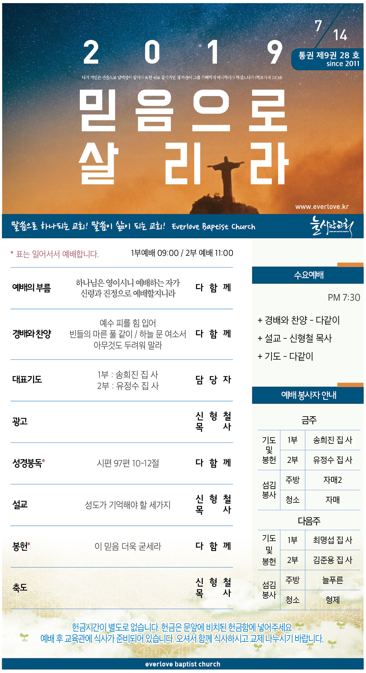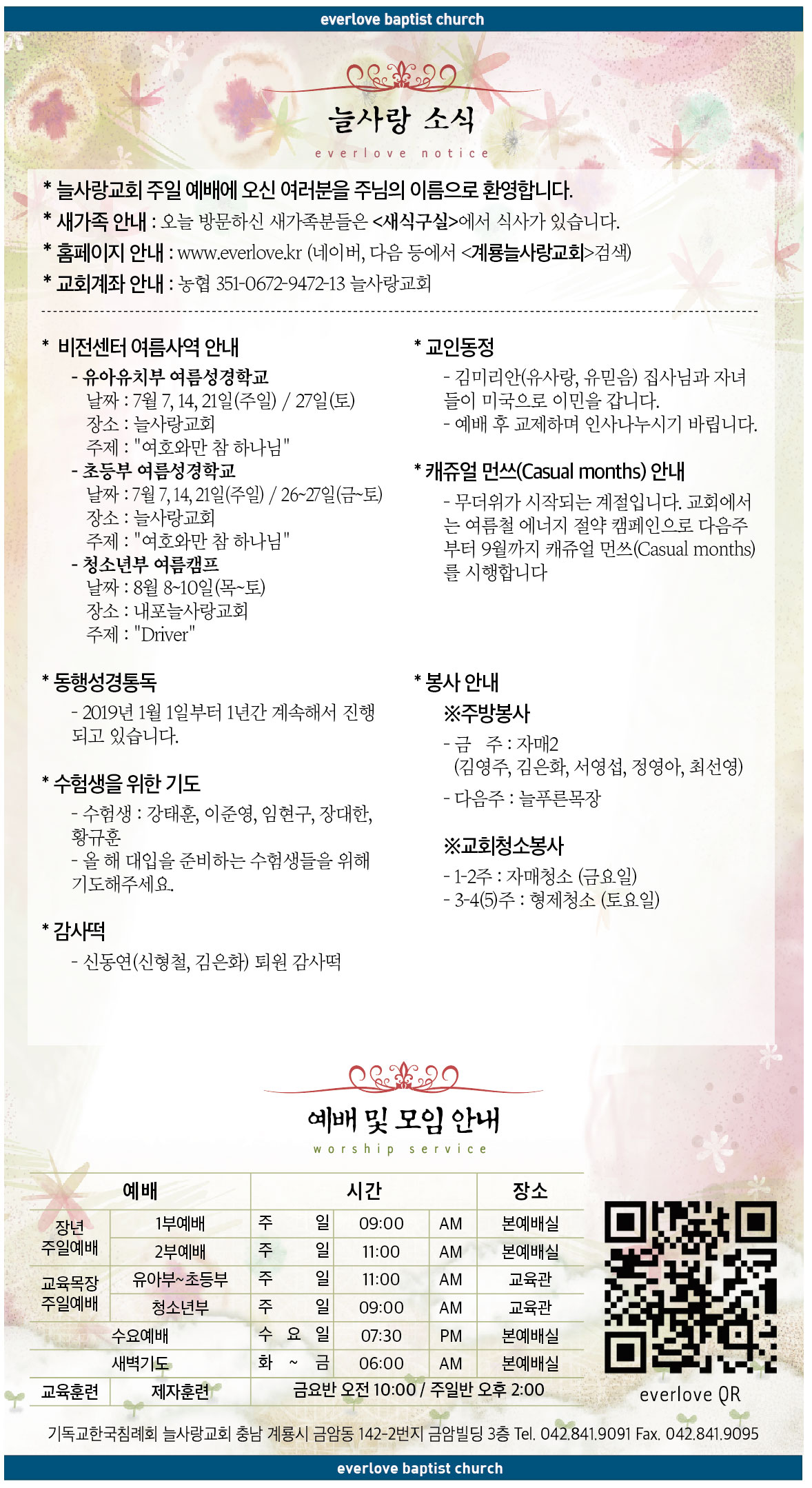 말씀이 삶이되는 늘사랑교회 늘사랑의 다양한 소식들을 전해 드립니다. 예배 순서와 말씀 본문도 보실 수 있습니다. 진행되는 사역들을 위해 함께 기도해 주세요. Tags:2019감사떡교인동정교회교회소식기도늘사랑동행성경통독비전센터수험생여름사역캐쥬얼먼쓰