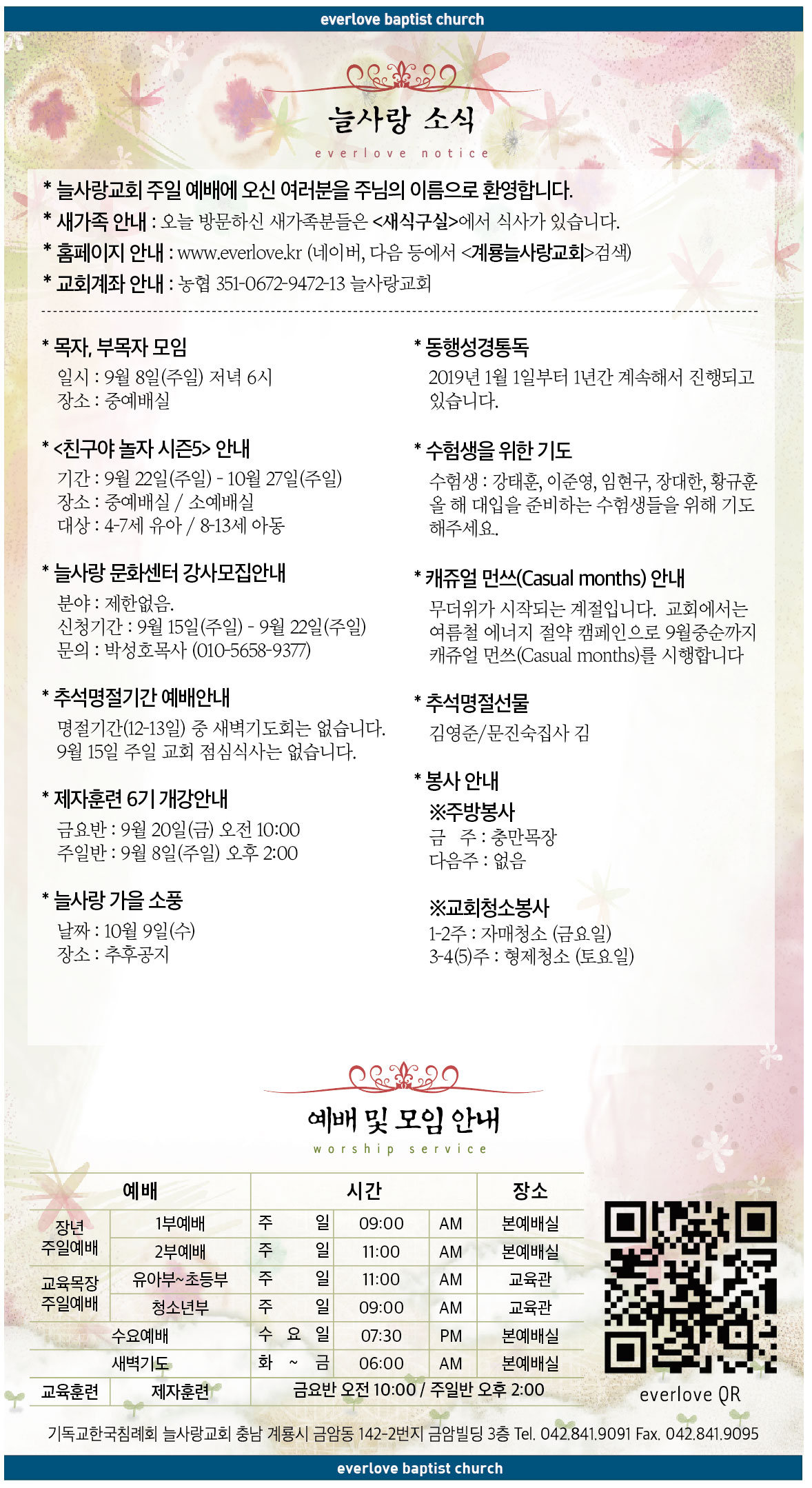 2019년 9월 8일 교회소식