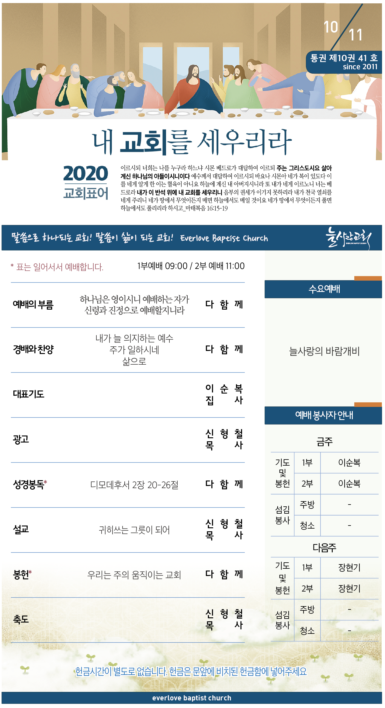 말씀이 삶이되는 늘사랑교회 늘사랑의 다양한 소식들을 전해 드립니다. 예배 순서와 말씀 본문도 보실 수 있습니다. 진행되는 사역들을 위해 함께 기도해 주세요. Tags:2020년계룡교회모임교회소식내가 늘 의지하는 예수늘사랑교회돌;보아라디오바람개비방역수칙사역협의회삶으로수험생예배안내우리는 주의 움직이는 교회주가 일하시네