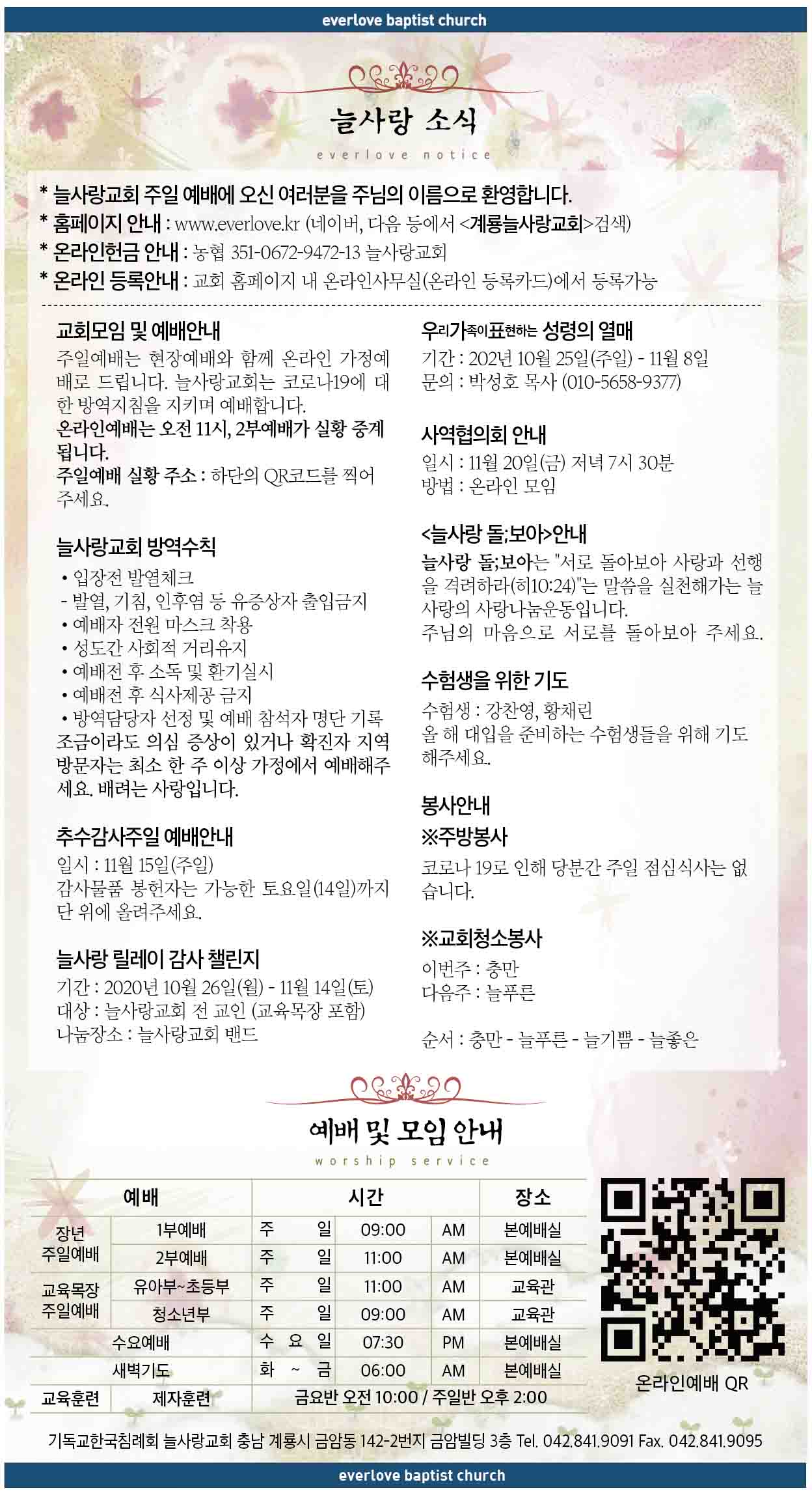 말씀이 삶이되는 늘사랑교회 늘사랑의 다양한 소식들을 전해 드립니다. 예배 순서와 말씀 본문도 보실 수 있습니다. 진행되는 사역들을 위해 함께 기도해 주세요. Tags:2020년감사 챌린지계룡교회교회모임나는 주님께 속한 자늘사랑릴레이방역수칙사역협의회삶으로성령의 열매소식수험생우가표우리는 주의 움직이는 교회주의 보혈 능력있도다추수감사주일