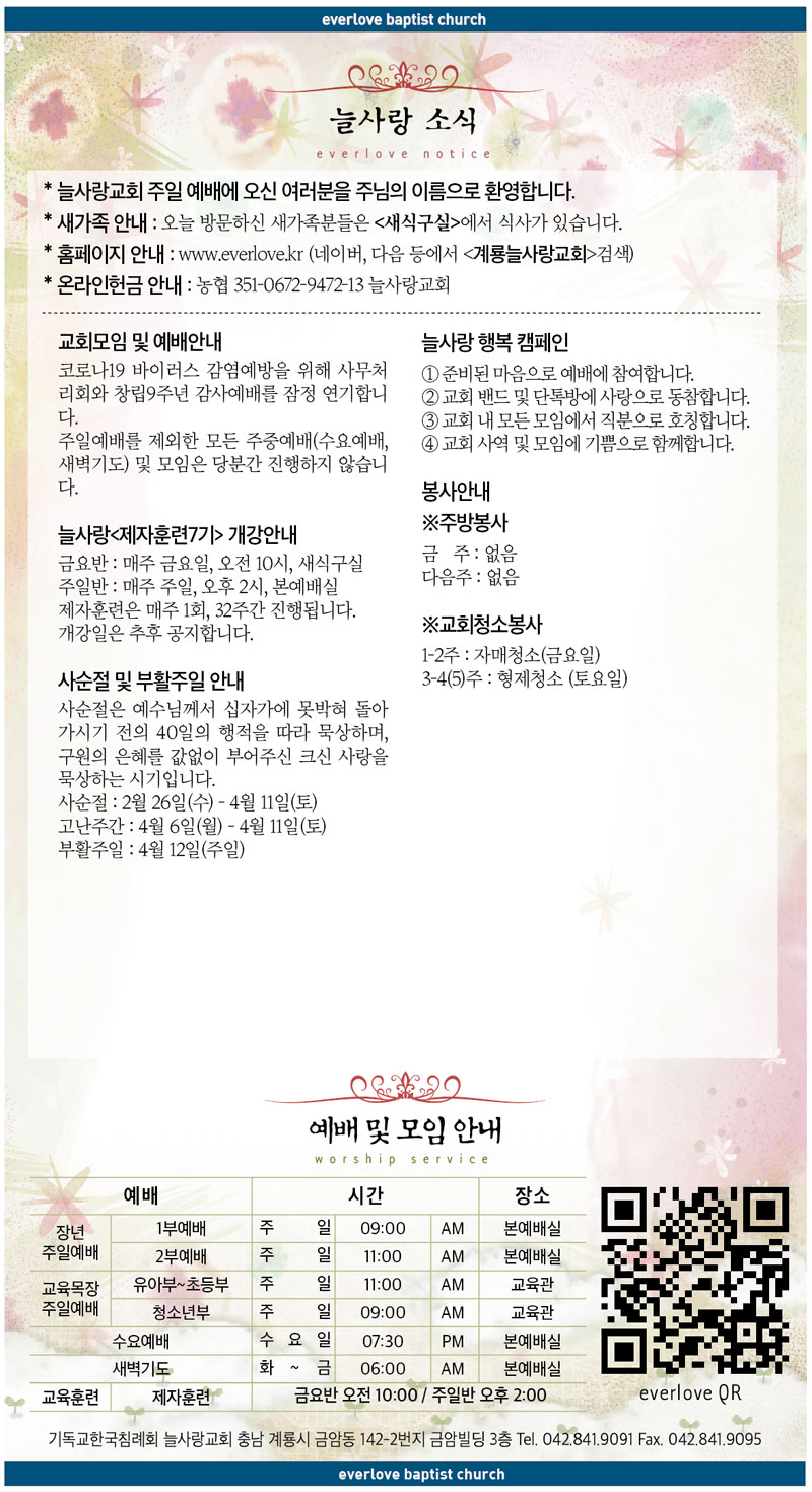 [늘사랑교회 주일예배 안내]