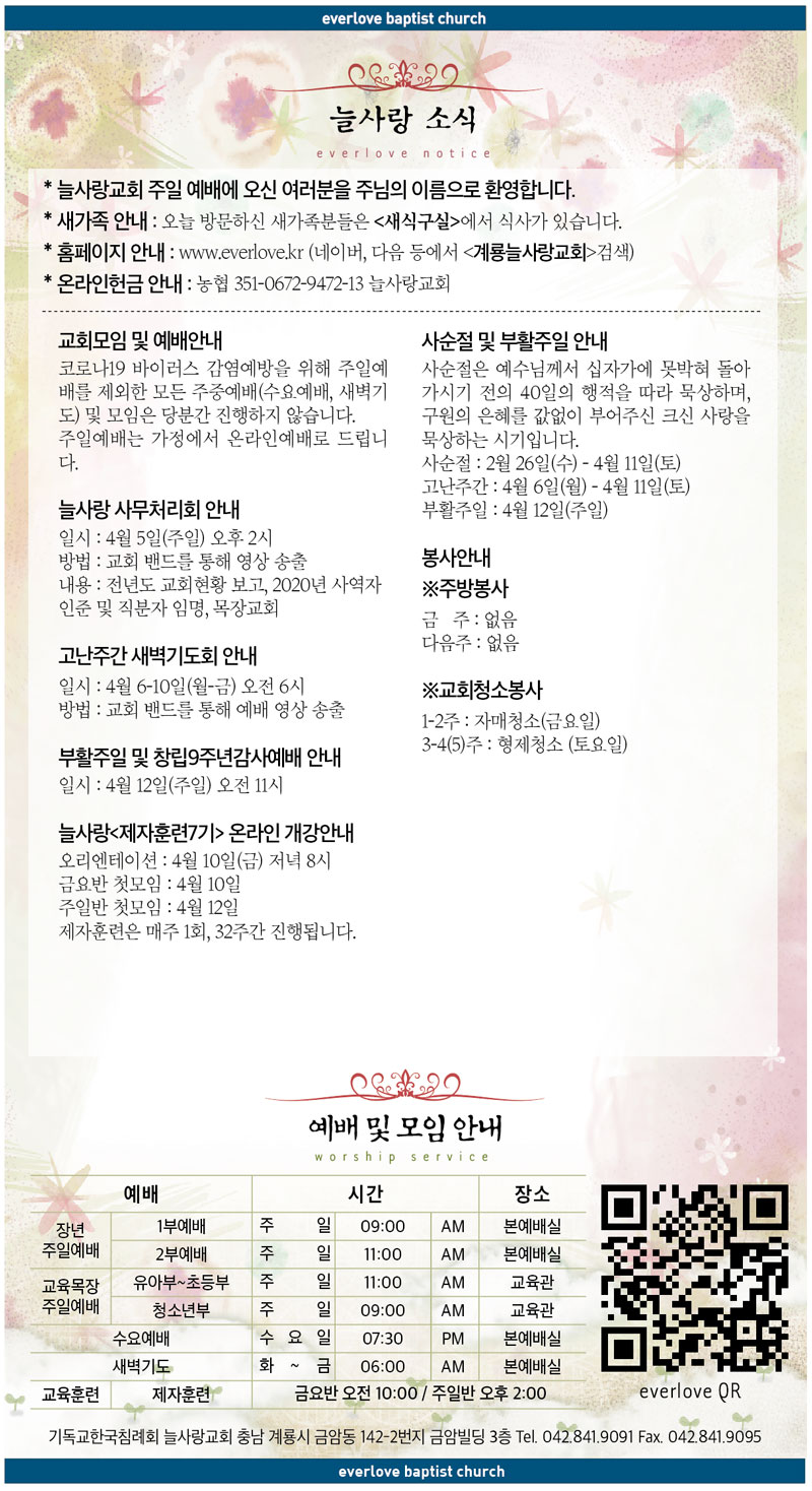4. 헌금은 예배 전에 온라인 계좌를 통해 봉헌합니다.