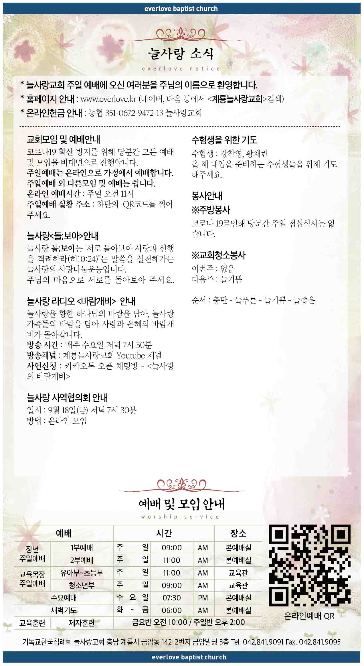 말씀이 삶이되는 늘사랑교회 늘사랑의 다양한 소식들을 전해 드립니다. 예배 순서와 말씀 본문도 보실 수 있습니다. 진행되는 사역들을 위해 함께 기도해 주세요. Tags:2020년계룡교회늘사랑돌;보아라디오바람개비사역협의회수험생우리는 주의 움직이는 교회원하고 바라고 기도합니다이 몸의 소망 무언가
