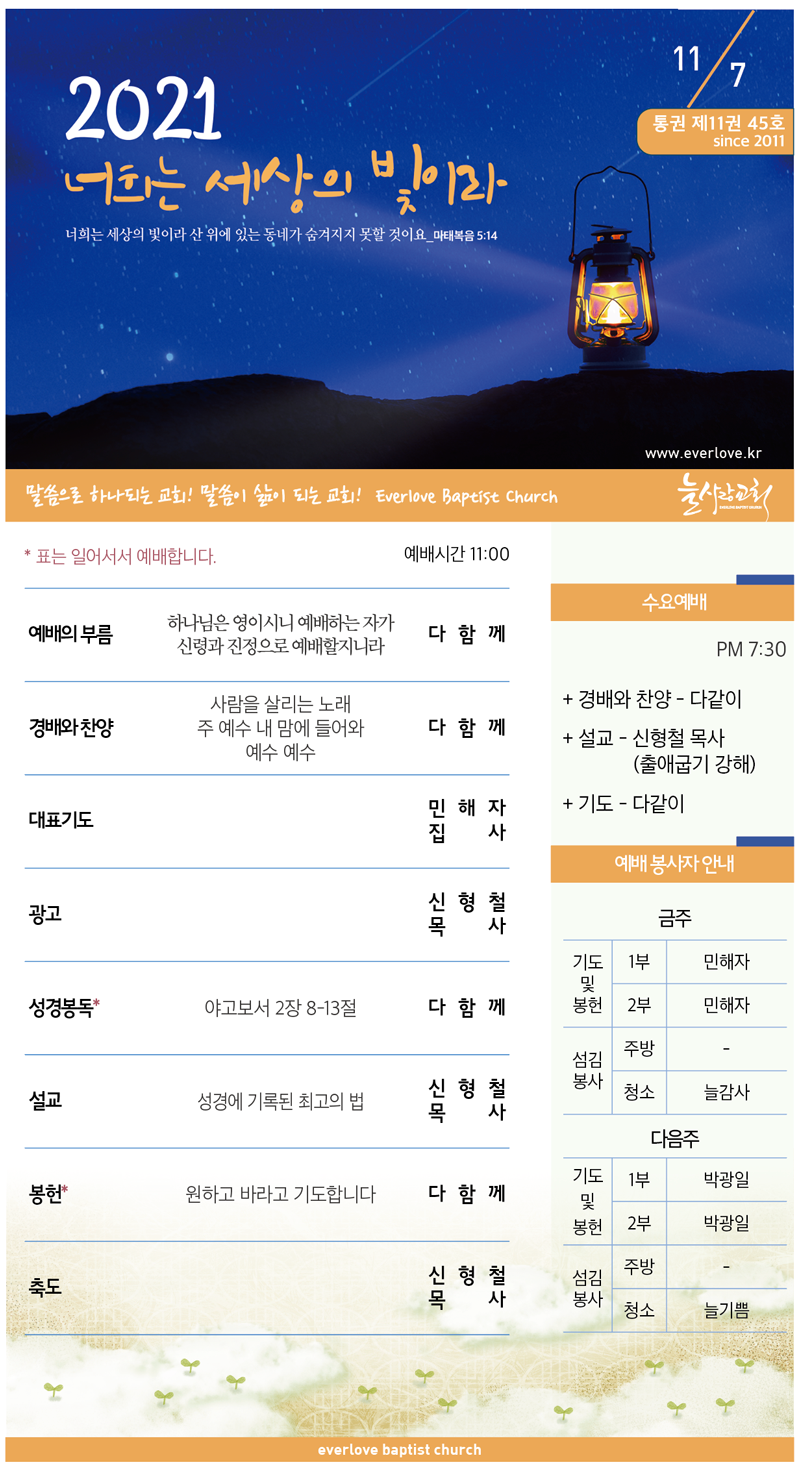 말씀이 삶이되는 늘사랑교회 늘사랑의 다양한 소식들을 전해 드립니다. 예배 순서와 말씀 본문도 보실 수 있습니다. 진행되는 사역들을 위해 함께 기도해 주세요. Tags:2021년감사계룡교회늘사랑리더릴레이모임목장교회사람을 살리는 노래사역협의회소식수요저녁수험생안내예배예수 예수원하고 바라고 기도합니다주 예수 내 맘에 들어와챌린지추수감사주일