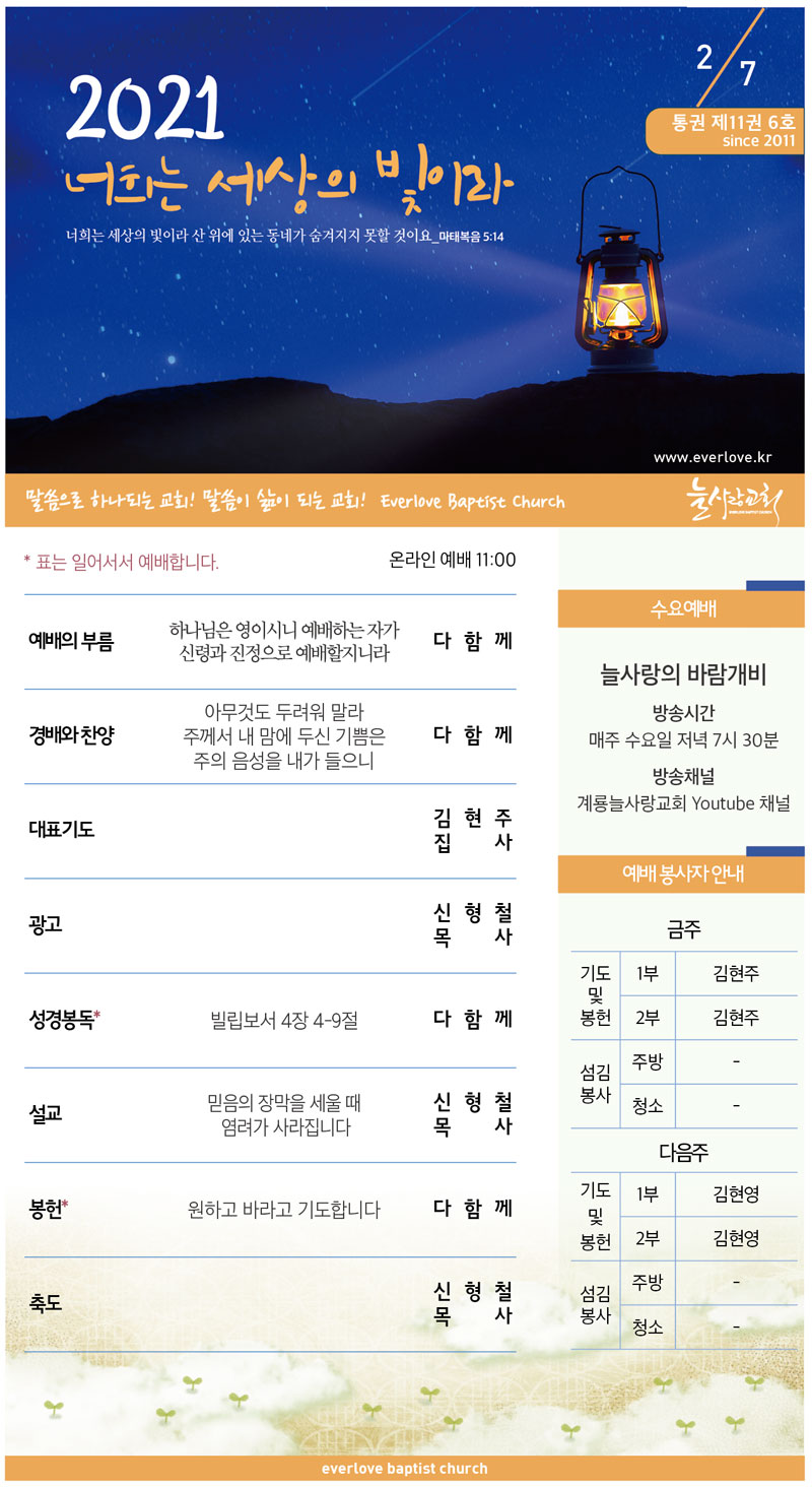 2021년 2월 7일 교회소식