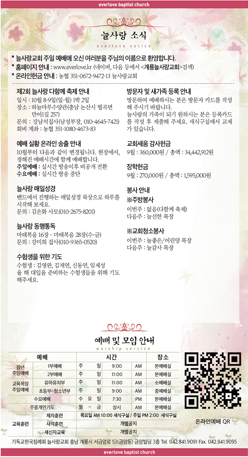 말씀이 삶이되는 늘사랑교회 늘사랑의 다양한 소식들을 전해 드립니다. 예배 순서와 말씀 본문도 보실 수 있습니다. 진행되는 사역들을 위해 함께 기도해 주세요. Tags:2023년감사헌금계룡교회교회세움늘사랑다함께동행통독매일성경목마른 내 영혼방문자소식송출수험생신령과 진정으로실황예수로 사는 인생온라인장학헌금제2회주가 주 되심을축제