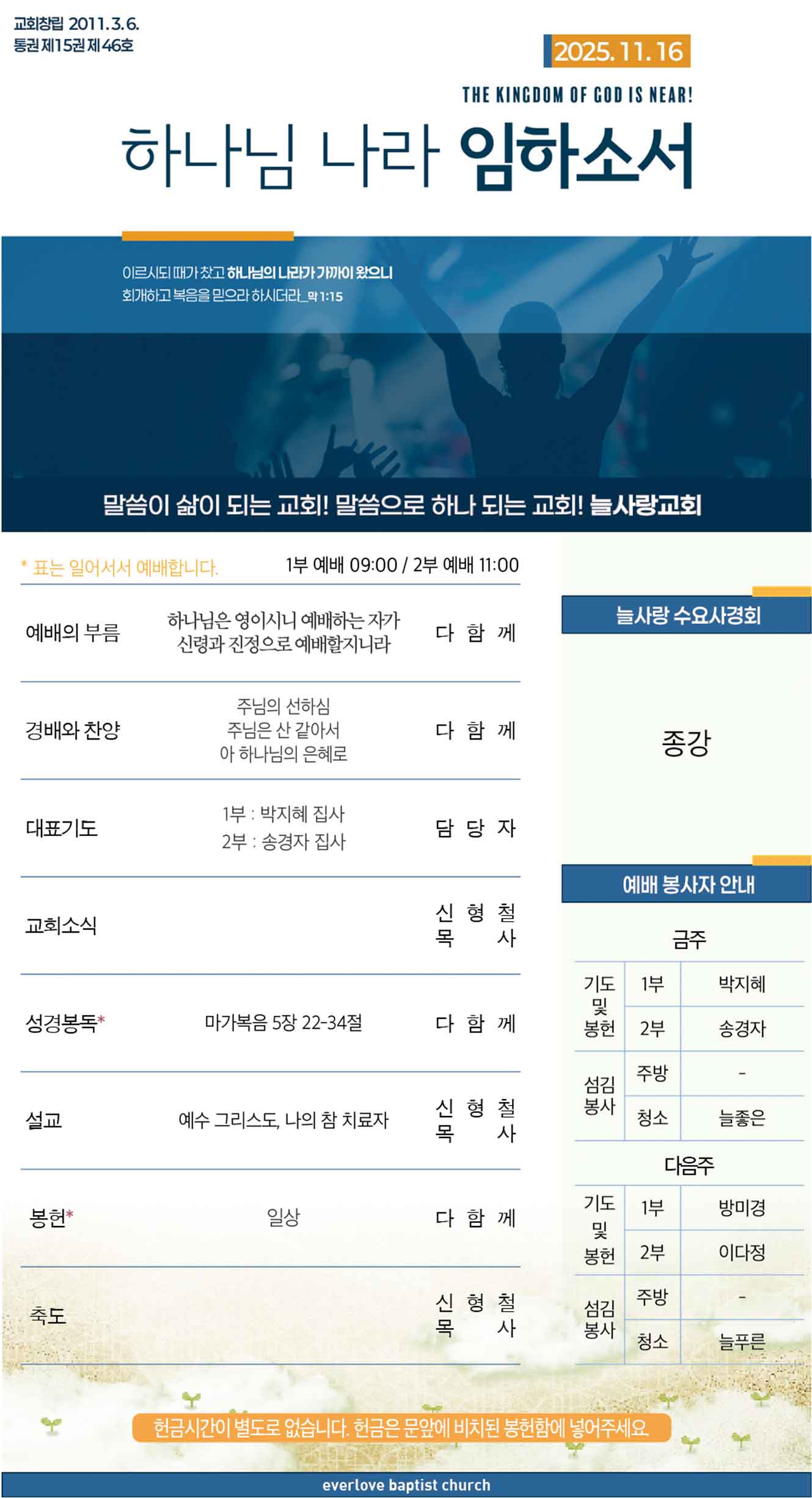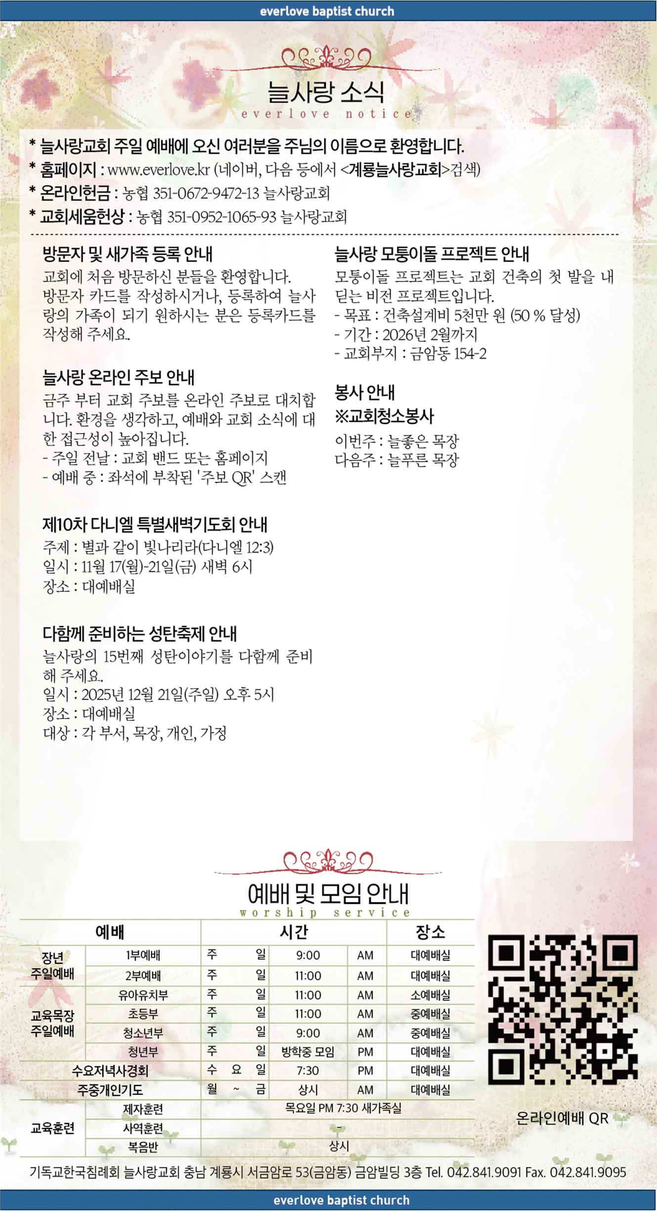 온라인 헌금 : 농협 351-0672-9472-13 / 늘사랑교회