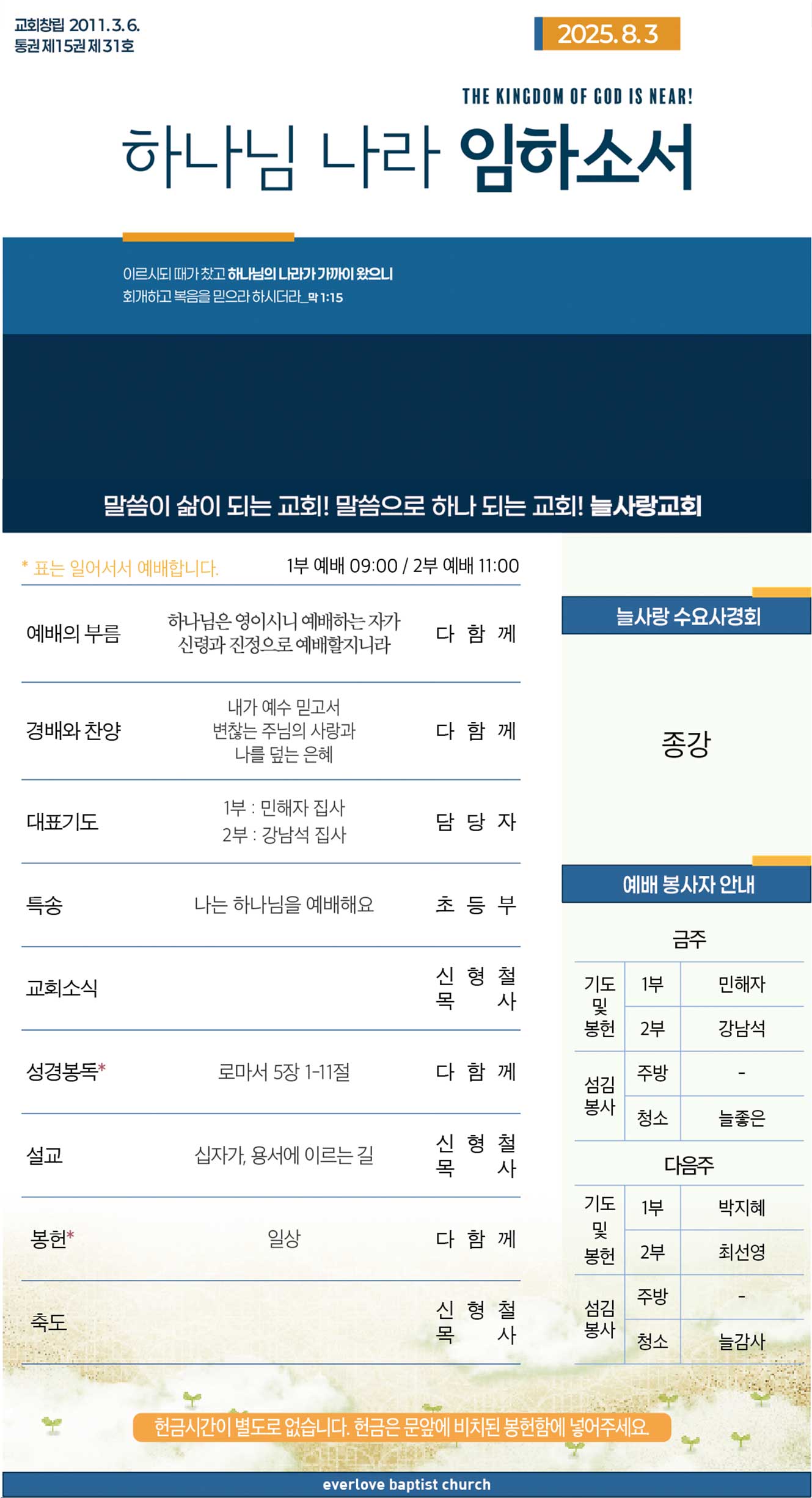 2025년 8월 10일 교회주보