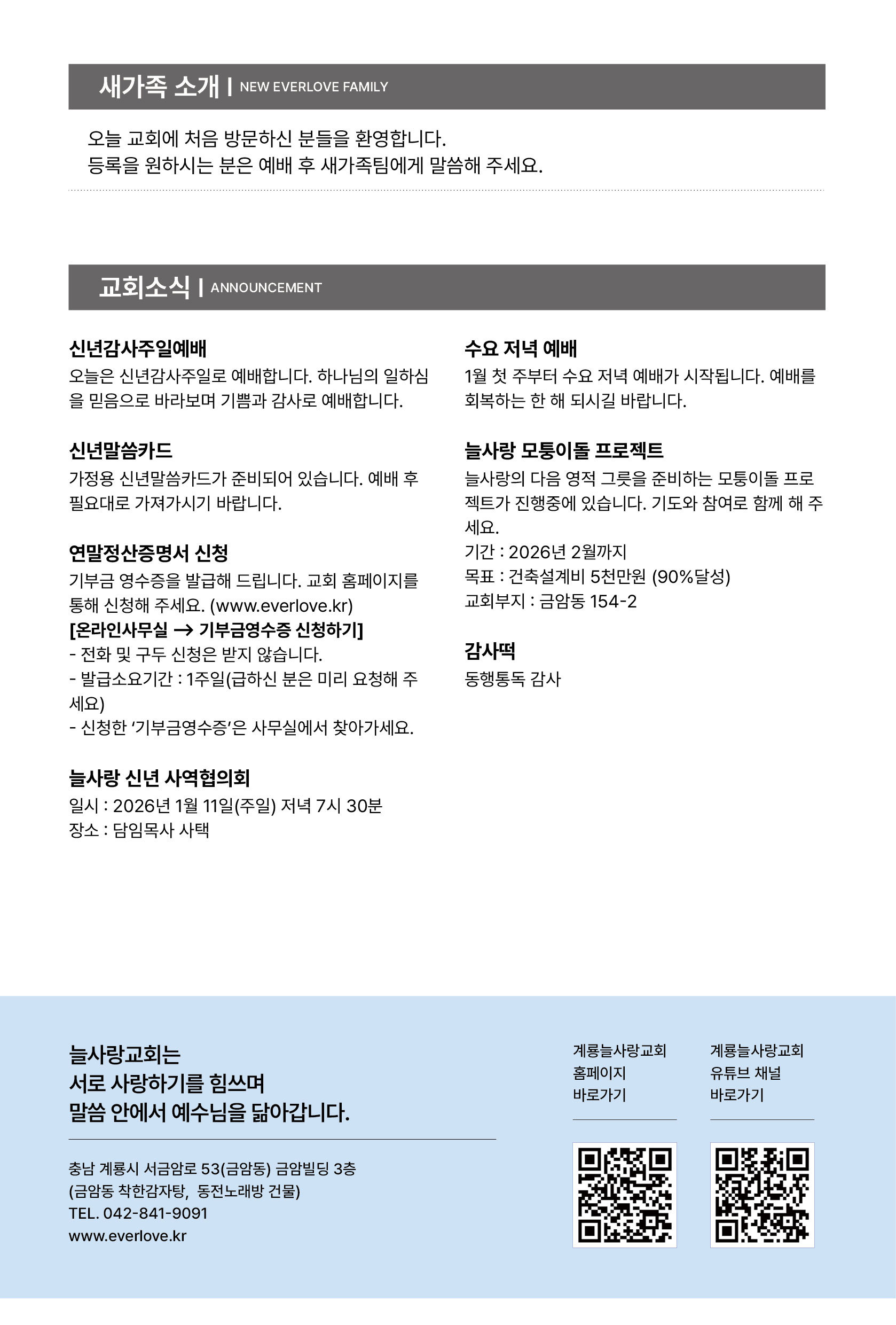 2026년 1월 11일 교회주보