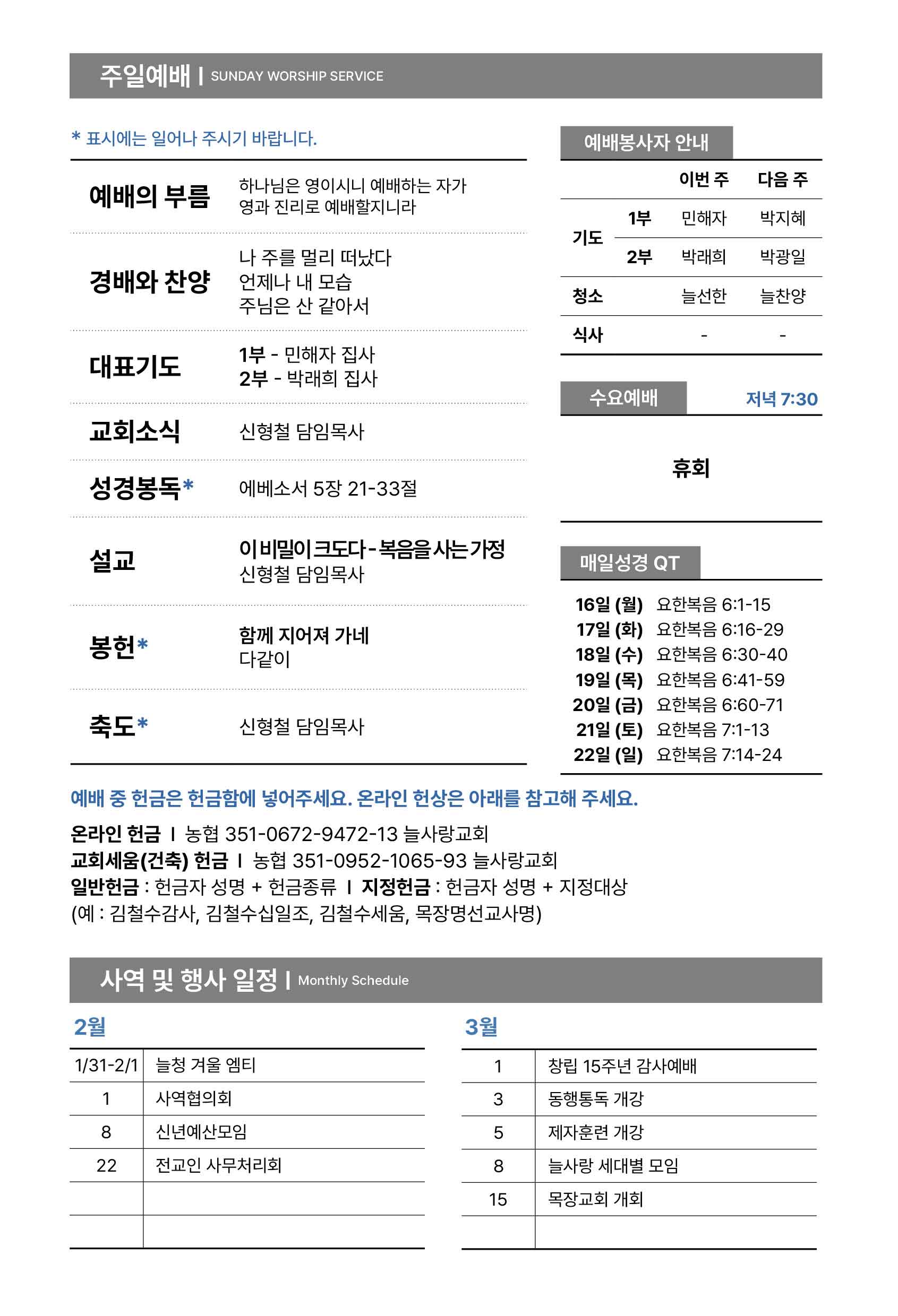 온라인 헌금 : 농협 351-0672-9472-13 / 늘사랑교회