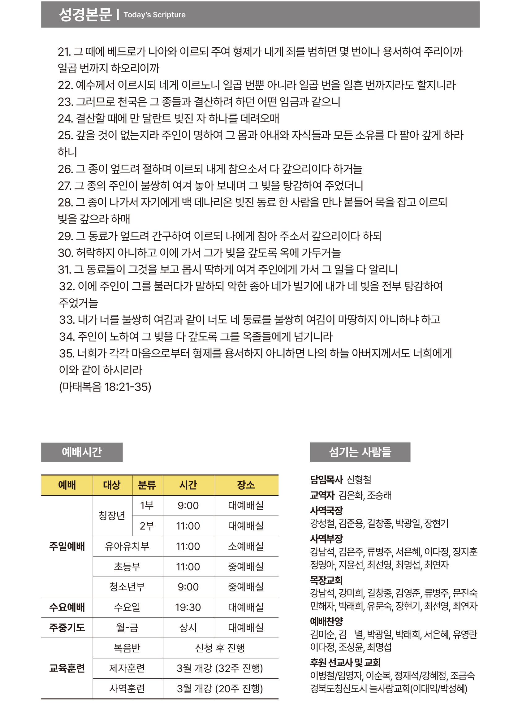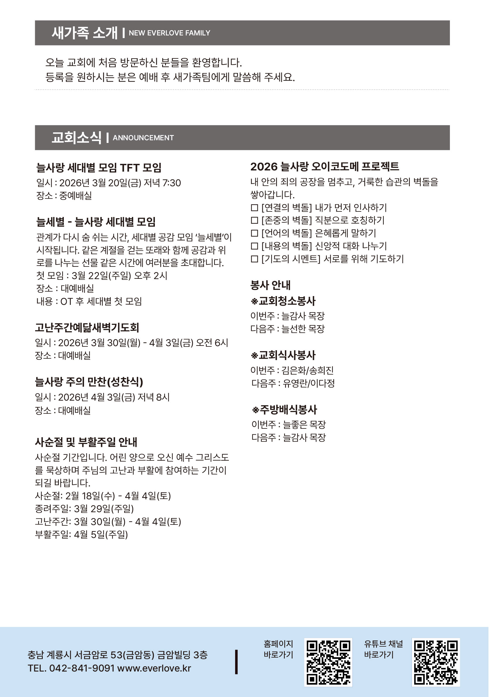 2026년 3월 15일 교회주보