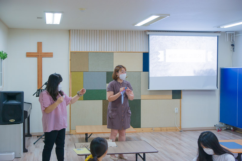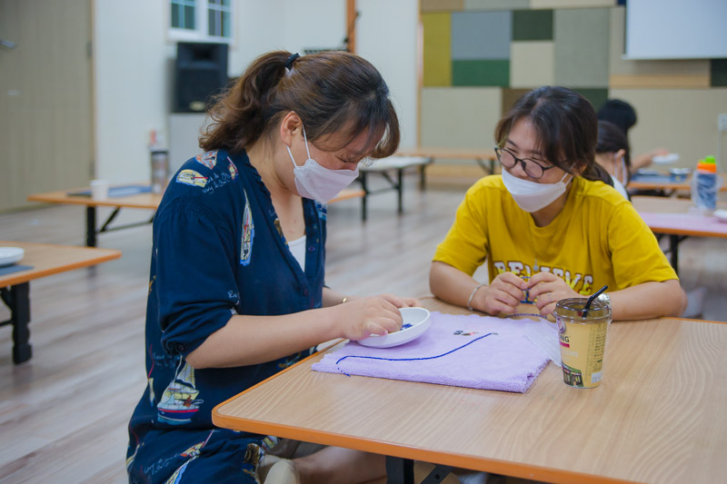 함께 모여서 방역수칙을 지키며 따뜻한 교제와 더불어 “비즈공예”를 하였습니다.