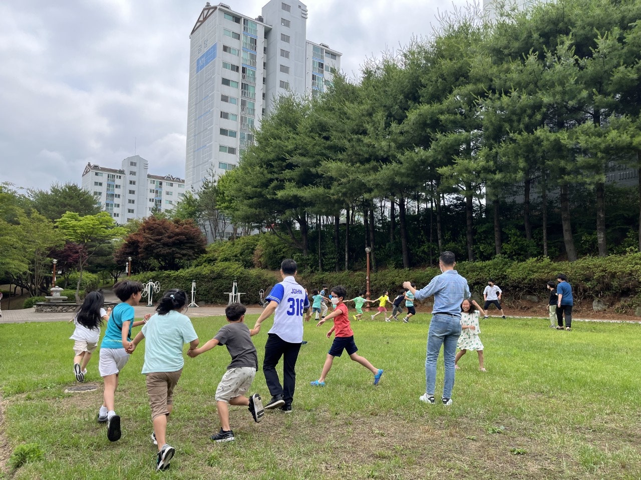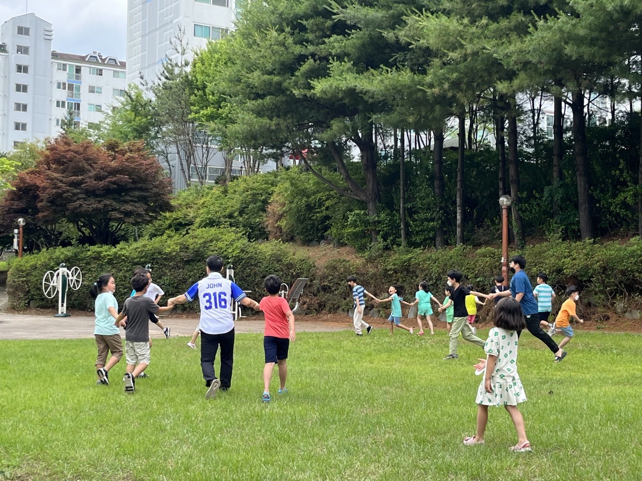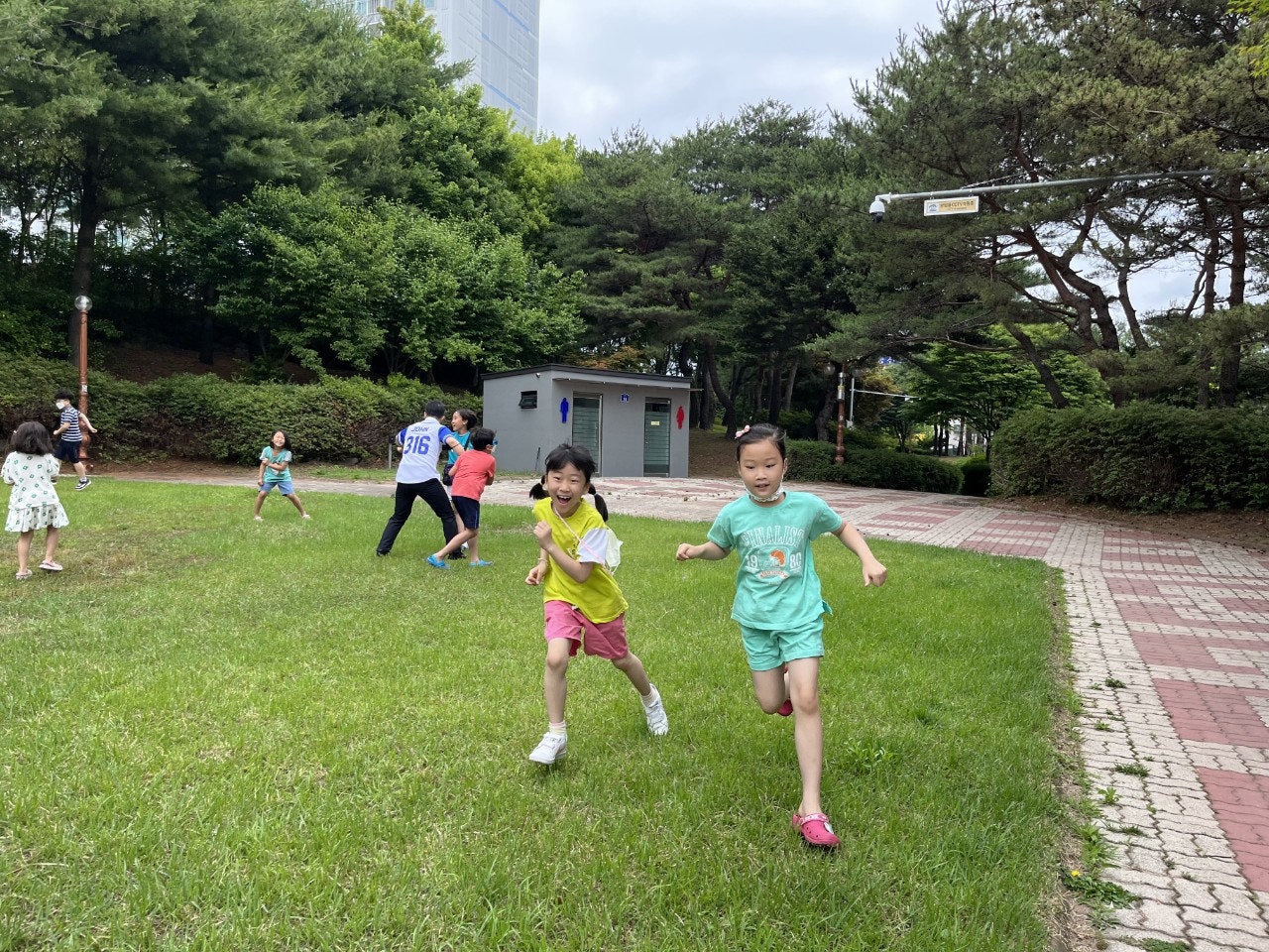 이번 주는 단체 술래잡기, 계주 달리기, 주머니 넣기를 신나게 하였습니다.